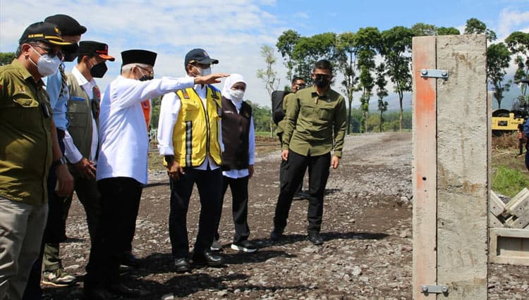 TIMES Natuna/Sekjen PUPR RI Mohammad Zainal Fatah dampingi Wapres RI KH Ma'ruf Amin meninjau lokasi pembangunan Hunian Sementara (Huntara) bagi korban terdampak erupsi Gunung Semeru di Desa Sumbermujur, Kecamatan Candipuro, Kabupaten Lumajang.